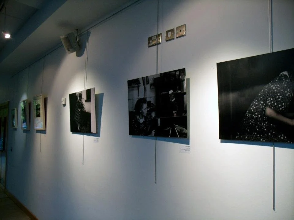 Photo of Sarah Eva Manson’s art hanging in a previous exhibition. The works are available.